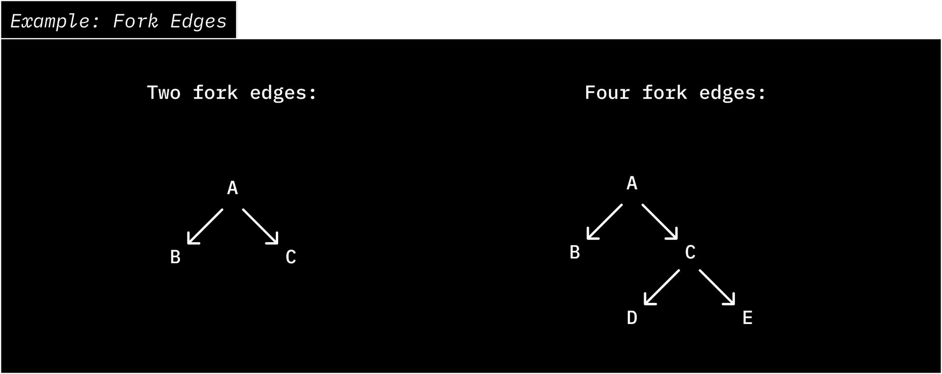 Chroma limits the number of fork edges in your fork tree. Every time you call “fork”, a new edge is created from the parent to the child. The count includes edges created by forks on the root collection and on any of its descendants; see the diagram below. The current default limit is 4,096 edges per tree. If you delete a collection, its edge remains in the tree and still counts. If you exceed the limit, the request returns a quota error for the NUM_FORKS rule. In that case, create a new collection with a full copy to start a fresh root.
